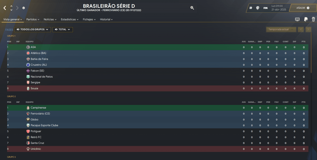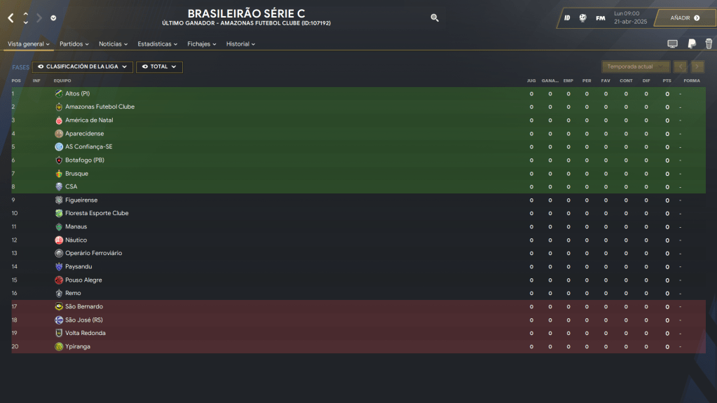 El archivo en sí es super simple para lo complejo que es: tiene la Serie A, Serie B y Serie C como son en la realidad con los formatos que trae directamente el juego, sin modificaciones. La Serie A es la única que esta actualizada al 2025 en sus participantes.