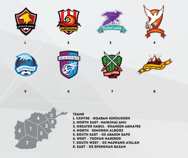 Desde 2021 se juega la Afghan Champions League que reune a 12 clubes en donde hay dos clubes de Farah, dos de Faryab, tres de Herat, dos de Kabul, uno de Kandahar, uno de Sar-e-Pol y el restante de Takhar.