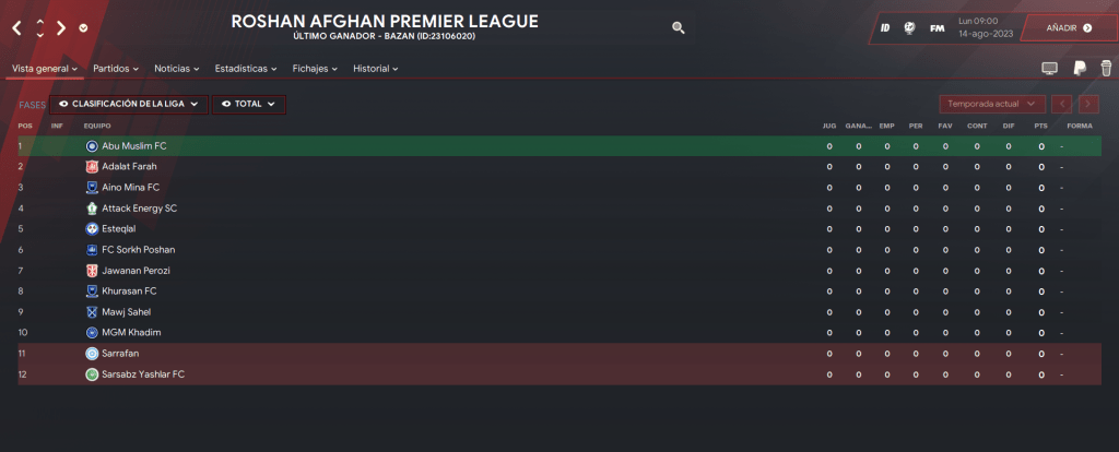 La liga afgana obviamente no está como jugable en el juego, pero como no somos británicos podemos descargar bases de datos. Sé que está en las bases de creadores como Timo, Arab o Qwerty que pueden encontrar en FMScout.com, pero acá soy falsobohemio y voy a hacer bombo de mi megapack que pueden encontrar acá