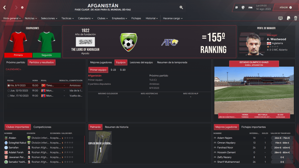 Afganistán en el Football Manager
