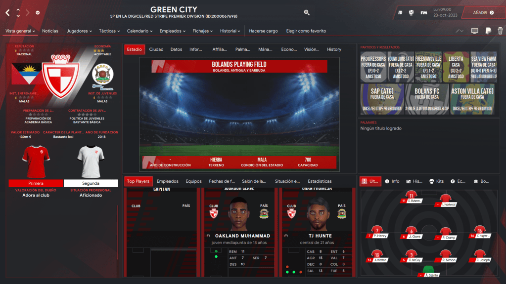 En Jolly Harbour, obviamente, no hay equipos pero si hay en Bolands que es el pueblo que está al lado y es donde viven efectivamente los locales. El Green City es el equipo que juega en la Primera División antiguana