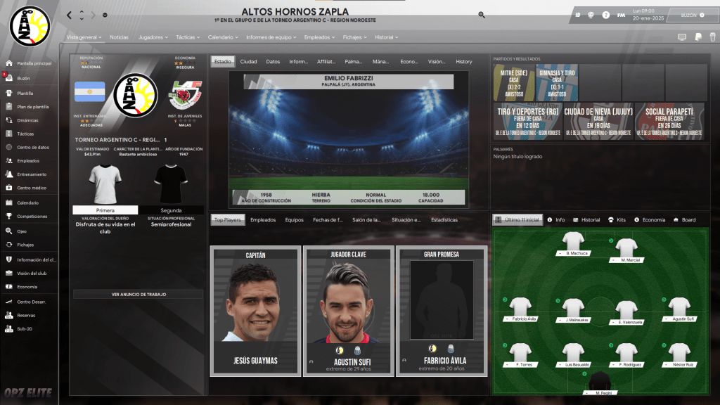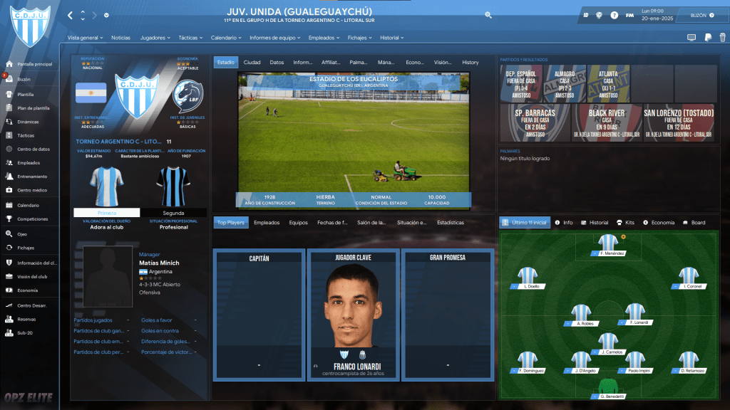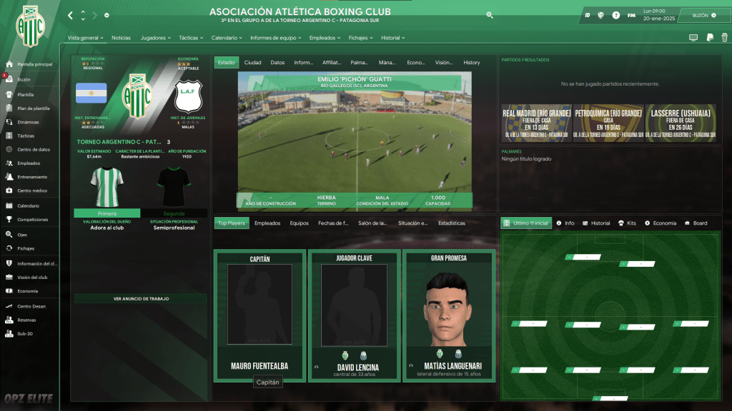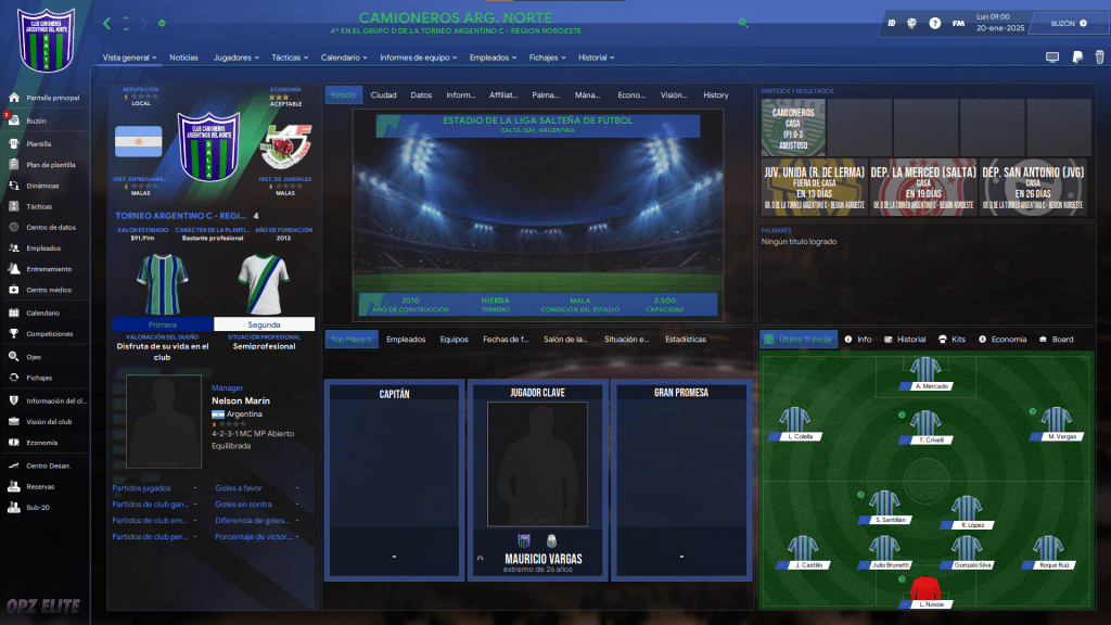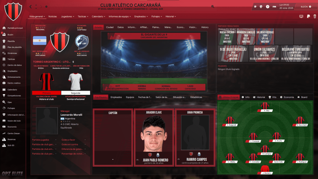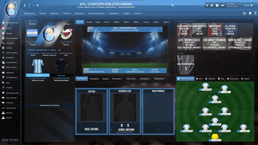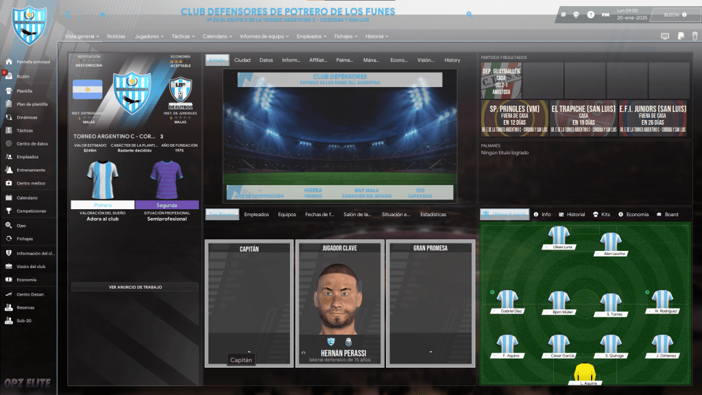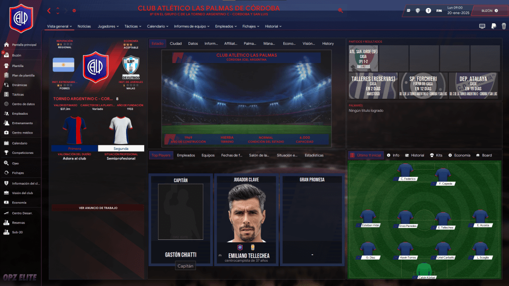 - Se usa la DB «Argentina 2025 (E2) (Ap-Cl 20 equipos) by falsobohemio» disponible en el megapack de esta página. Se toma como referencia para los equipos la última división de dicha DB.