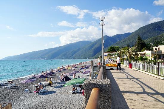 Sus atractivos principales son el mencionado parlamento, que funcionaba en tiempos de la RSS de Georgia, al abandonarse los abjasios decidieron crear otro parlamento y el edificio se convirtió en una meca para los turistas que disfrutan estar en lugares abandonados. También obviamente su paseo marítimo, el jardín botánico y conocer a su tan particular gente