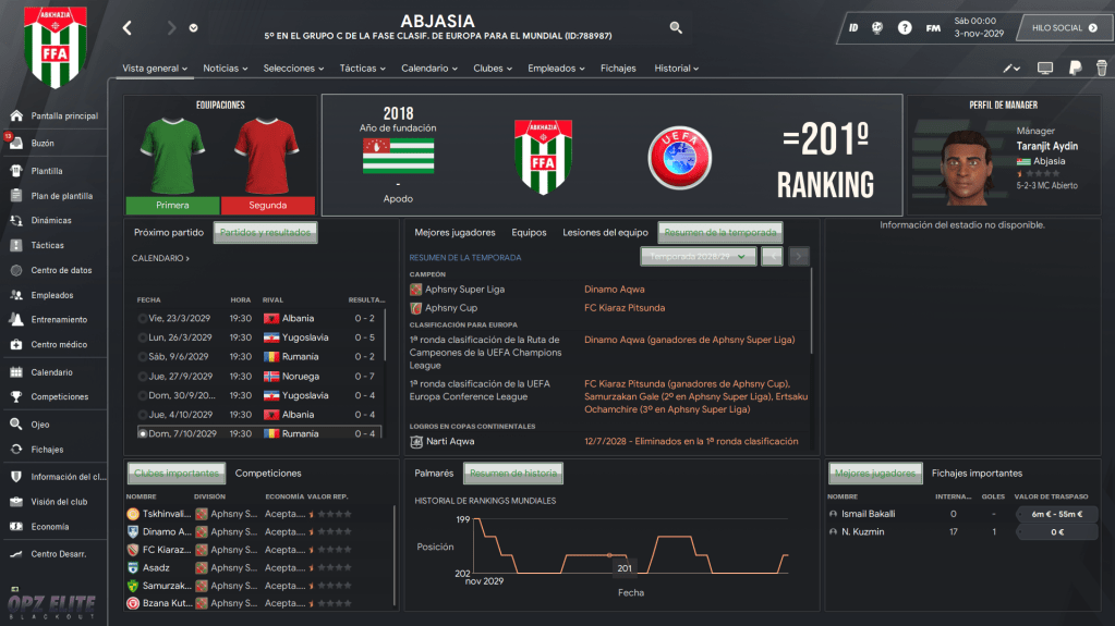 Obviamente, Abjasia y Osetia del Sur no están en el Football Manager ni siquiera como país inactivo sino que son una región de Georgia, aunque con mi megapack que lo descargan acá, pueden jugar en Abjasia donde incluí un equipo de Osetia del Sur y los osetios son ciudadanos abjasios.