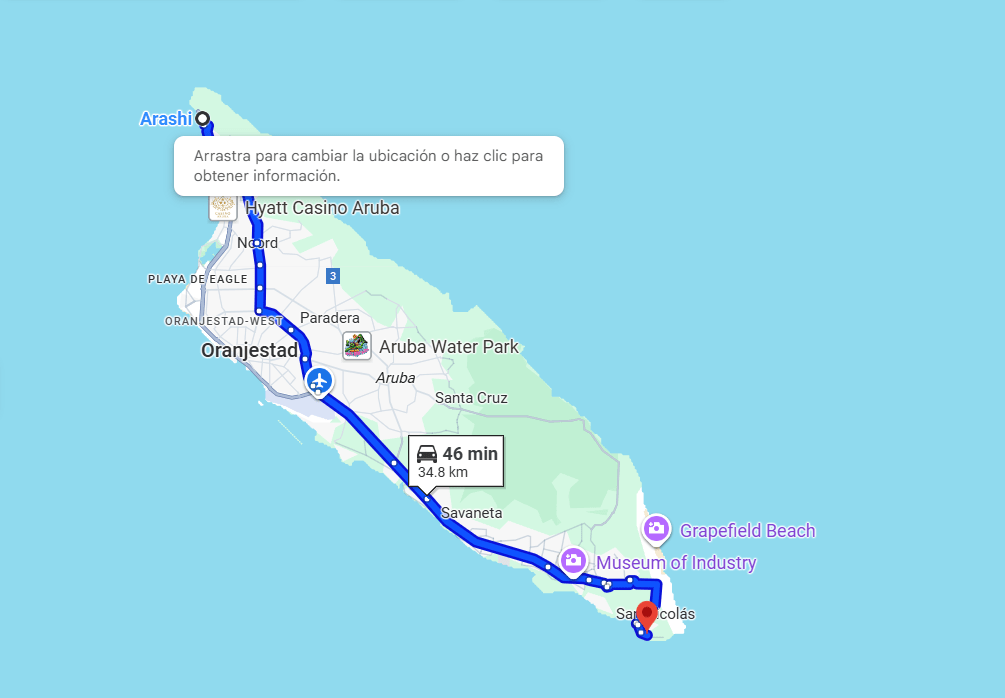 Aruba es un destino de sol y playa y sí, lo que más tiene es playas. La más conocida, masificada y turistica es Palm Beach, al norte de la isla junto con Eagle Beach, un poco menos masiva pero igualmente dotada de servicios. Baby Beach, también muy famosa se encuentra al sur de la isla en San Nicolás.