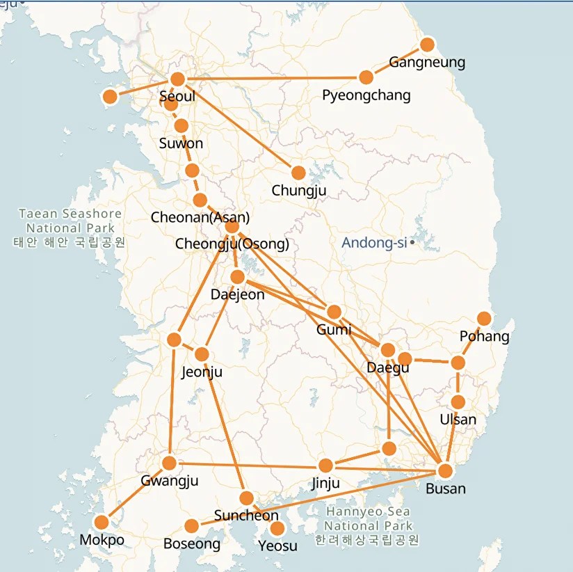 Luego, Corea tiene un excelente sistema de ferrocarriles operados por Korail, incluyendo el KTX o tren de alta velocidad que tarda dos horas y media entre Seúl y Busan. También hay servicios de media velocidad y de cercanías además del propio metro de Seúl, Busan, Daegu, Gwanju, Daejeon e Incheon. A todo esto se suma la red propia de autobuses de larga, media y corta distancia