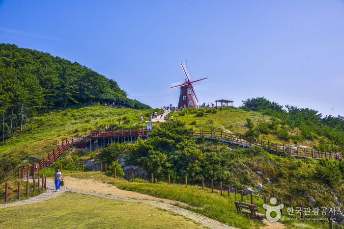 A una hora de Busan se encuentra la coqueta ciudad de Geoje, en sí es una isla en un conjunto de islas pero en la práctica al estar separados por puentes no se da esa sensación. Sus atractivos turisticos son similares a Namhae vinculados a la agricultura y al encuentro de la montaña con el mar. Destacándose Windy Hill, una colina al sur de la isla en el dong de Dojangpo encontrando un molino de color rojo en el medio del acantilado desde donde se ve el pequeño pueblo y los islotes en el mar. Su popularidad se debe a dos K-drama muy reconocidos en Corea del Sur: Carrousel y El jardín de Eva