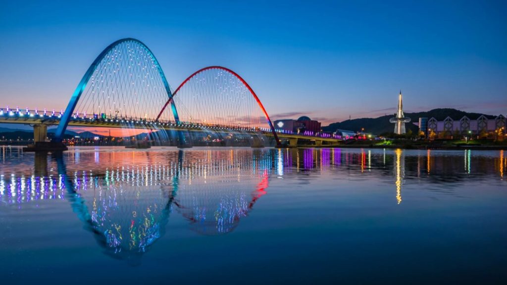 Daejeon se encuentra inmediatamente al sur de Sejong, a 167 kilómetros de Seúl. Cuenta con 1.500.000 de habitantes y es la quinta ciudad más importante de Corea. Su importancia yace en que es un gran nodo de transporte y un lugar de confluencia entre los distintos ramales de la red de alta velocidad. La ciudad es hogar de 23 universidades, principalmente dedicadas a la ciencia y la tecnología convirtiéndola en un polo científico de alto valor.