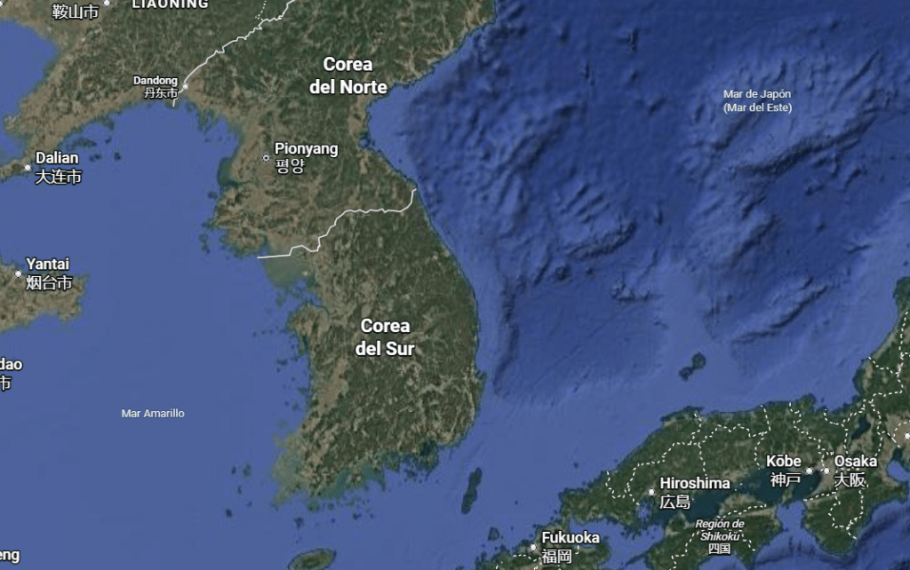 Corea del Sur, como ya dijimos anteriormente, es la porción sur del paralelo 38 de la península coreana. Tiene solo un limite terrestre con Corea del Norte en la Zona Desmilitarizada y tiene costas al Mar Amarillo y al Mar del Japón (Mar del Este para los coreanos). La península en total tiene 220.000 kilómetros cuadrados, de los cuales Corea del Sur ocupa un total de 100.000 (una superficie similar a Chaco o Catamarca.