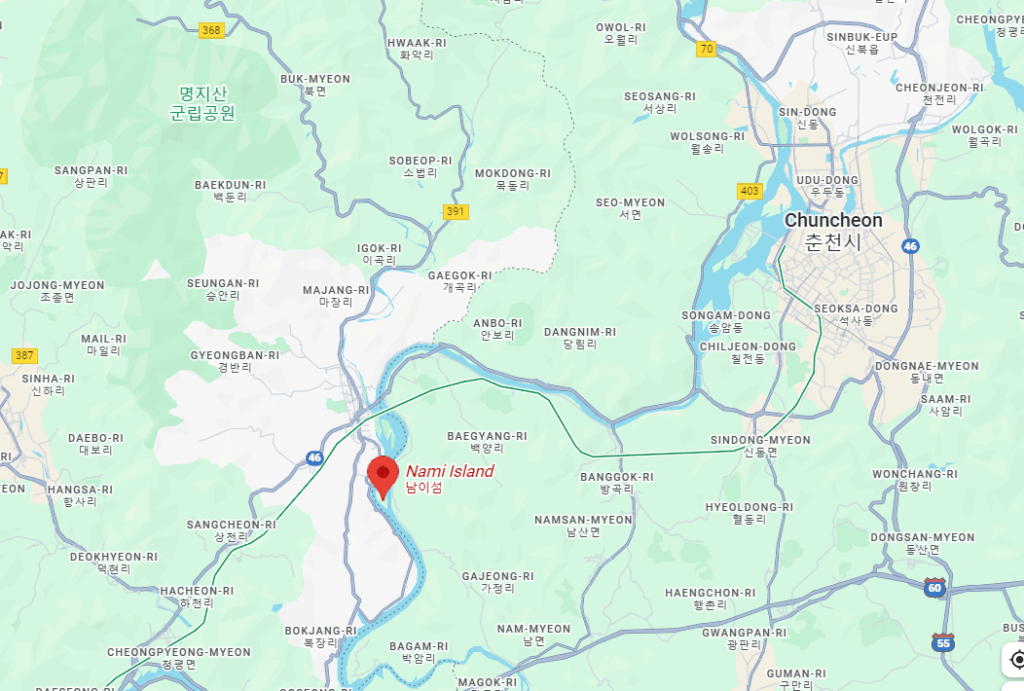 La isla de Nami es una isla con forma de medialuna sobre el rio Bukhan que pertenece a la ciudad de Chuncheon aunque la más cercana es Gapyeong en la provincia de Gyeonggi.