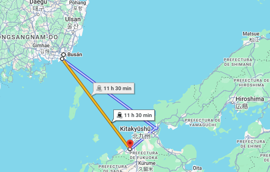 Pero lo más curioso es que esta misma ruta en Donghae continua hacia Vladivostok en Rusia, llegando luego de 24 horas de navegación y que permite llegar desde, por ejemplo, Lisboa sin avión a Corea. Esta ruta la hace la Duwon Shipping Company