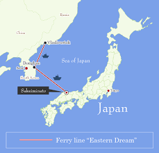 La ruta entre Corea y Japón es más famosa desde Busan donde se arriba a Fukuoka en ocho horas y media aproximadamente en un ferry nocturno (hasta 2024 operó un ferry de alta velocidad que solo tardaba tres horas y media). Sin embargo desde Donghae sale una vez por semana un ferry a Sakaimimato, más al norte de Japón que tarda 15 horas