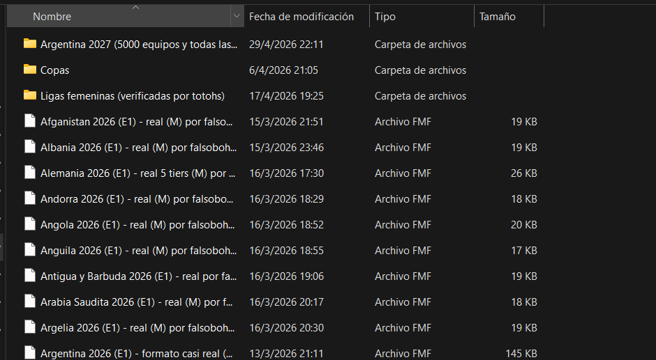 En el parche van a encontrar casi 4000 equipos creados a mano, con sus escudos, con sus estadios, con sus años de fundación, con sus camisetas. Fue un trabajo titanico que vio luz en septiembre de 2025 y que ahora desde enero de 2026 me encontré agregándole dos cosas importantes: el ascenso y descenso dentro de las ligas regionales y actualizar todo a la temporada 2026. Espero que lo jueguen y lo disfruten.