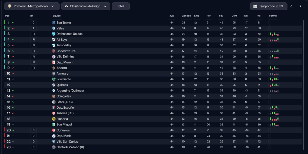 Lamentablemente en el parche si seguimos la dualidad entre afiliados directa e indirectamente, principalmente por una cuestión deportiva dentro del parche y poder diferenciar los caminos. La Primera B Metropolitana va a tener dos formatos: cuando la categoría tiene 22 equipos o menos, va a jugar una liga a dos ruedas con un campeón que asciende directamente a la Primera Nacional, un torneo reducido para definir el segundo ascenso y dos descensos directos a la Primera C. Cuando el torneo tiene más de 22 equipos, va a tener 4 descensos directos a la Primera C.