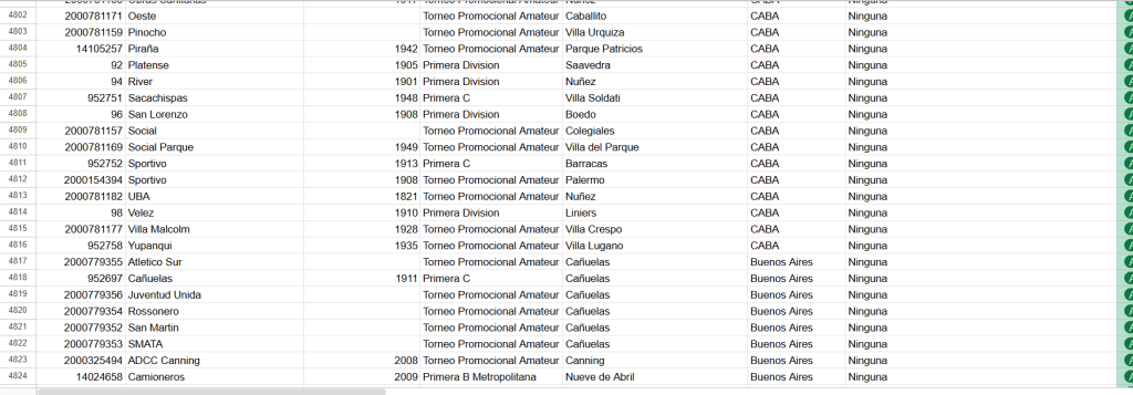 Lo más importante que va a incluir el parche es el Excel que es la base de datos de todos los clubes que están jugables en el juego. Además sirve como base de datos para leer todos los clubes que hay en la Argentina. En este excel van a encontrar los nombres de los clubes, sus ID, ciudad, provincia, estadio, liga afiliada, liga en el juego y en algunos casos los colores.