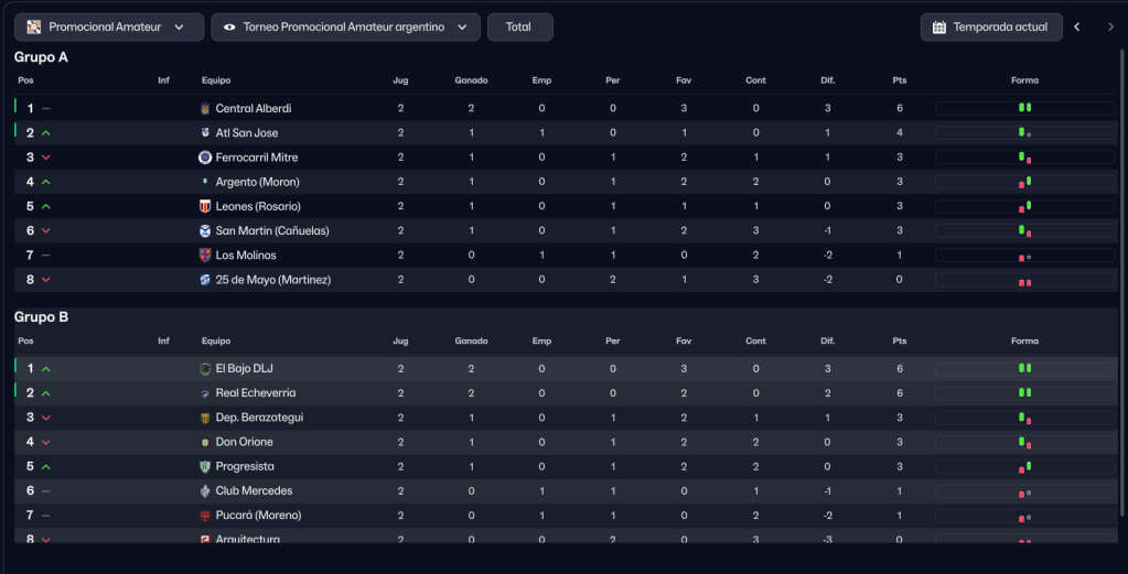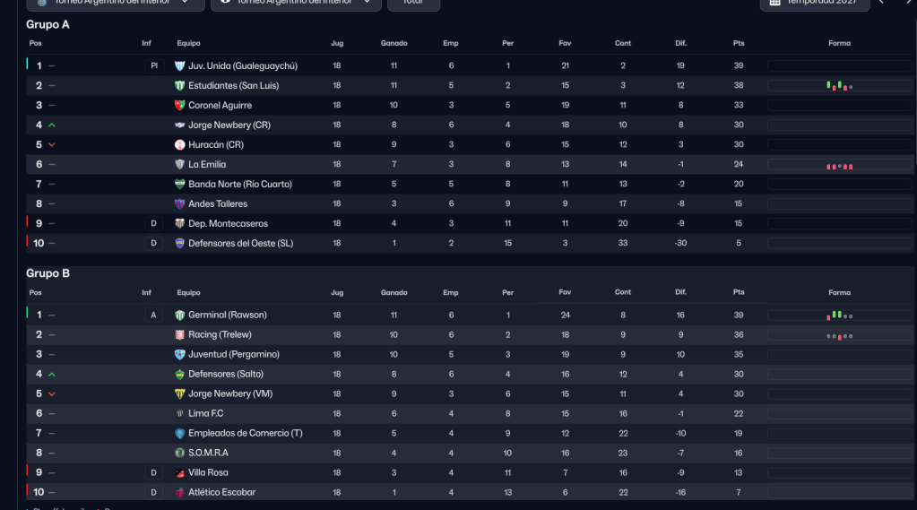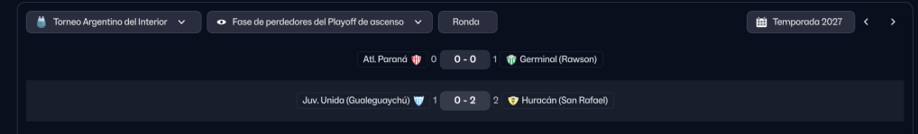 - (la division secundaria debe ser la misma que los de su liga, verificar si es correcto)